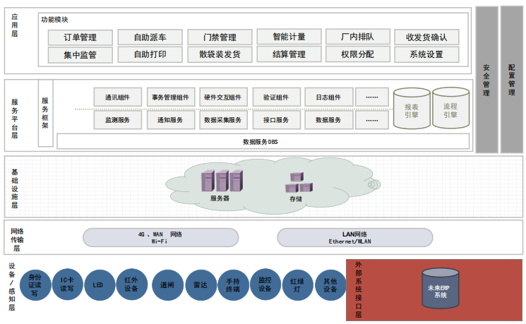 In the interface design, through the formulation of data interface docking standards, the development of a unified data interface for the existing business system to provide data exchange, integration interface, the use of Web Service, API, HTTP, XML and other technologies, to achieve data acquisition, facilitate the connection with other application systems. Through the standard development interface, such as text, video, pictures, documents, comments, logs, sites, columns and other website data interface, to provide data query, write, import, export and other functions, convenient to achieve the connection with other application systems. This scheme is connected with the safety and environmental protection platform, unattended weighing station and visual large screen.