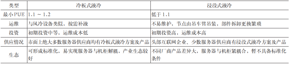 Table 1 Comparison of server liquid cooling selection