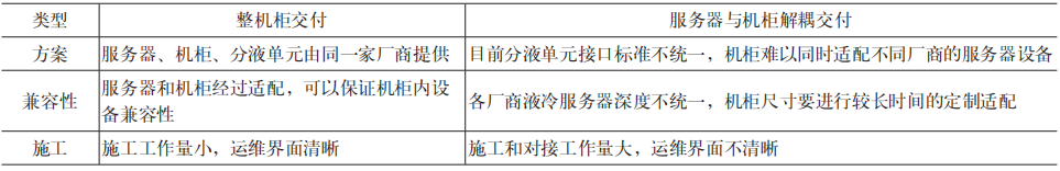 表2 冷板式液冷机柜交付方式对比