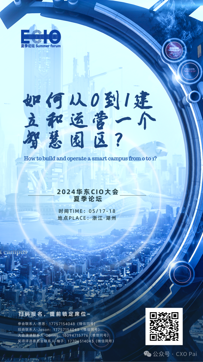 2024华东CIO大会夏季论坛将于5月17-18日隆重召开。如何从0到1建立和运营一个智慧园区?期待在这场思想盛宴上您能够得到更多的解答!数字化转型网(www.szhzxw.cn)