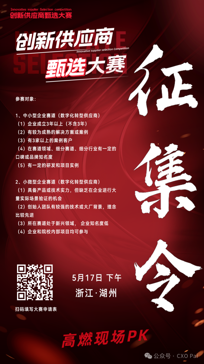 您为甲方企业,对创新供应商甄选大赛感兴趣,想现场进行观摩或寻找一些创新方案,可点击此处报名,提前锁定大赛观摩席位:数字化转型网(www.szhzxw.cn)