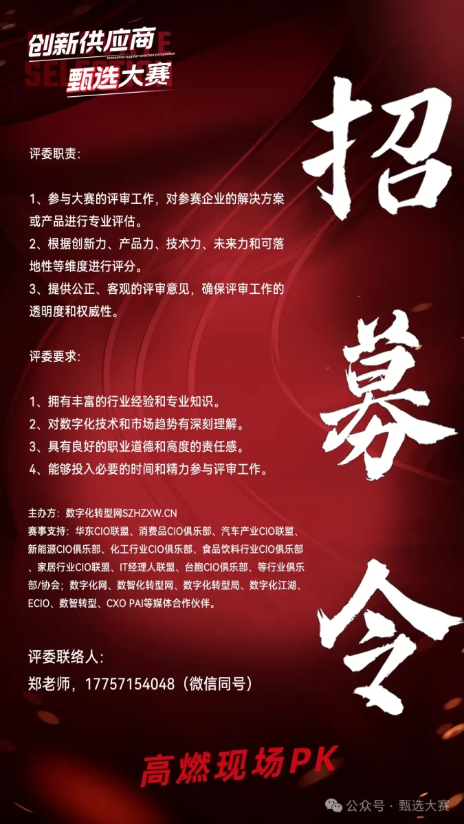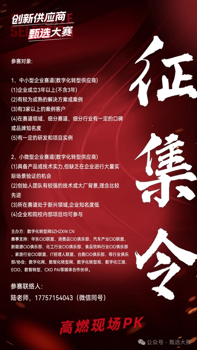 创新供应商甄选大赛持续报名中,如您对甄选大赛感兴趣,可联系参赛联络人: