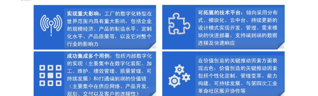 System integration and data connectivity are key characteristics of enterprises moving towards the level of maturity. According to the data analysis results of the platform, 20.77% of enterprises have developed a complete system integration architecture and specifications, and only 12.77% of enterprises can realize the integration of design, production, logistics, sales and service. The demand for enterprise integration is strong, and there are widespread problems such as low technology level, weak personnel capacity, and large capital investment, which make it difficult to achieve interconnection, or restrict enterprises to move towards a high maturity stage. 数字化转型网(www.szhzxw.cn)数字化转型网灯塔智造专题