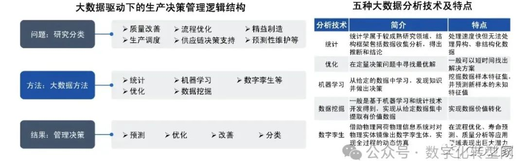 大数据分析(机器学习、数据挖掘、数字孪生等)的出现,使过去企业依赖经验改善生产活动的模式,转变为数据驱动决策和生产管理新模式。