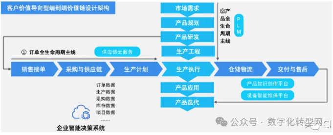 工业富联提出了基于客户价值导向的端到端价值链设计架构,主要包括两条主线:订单全生命周期主线和产品全生命周期主线。