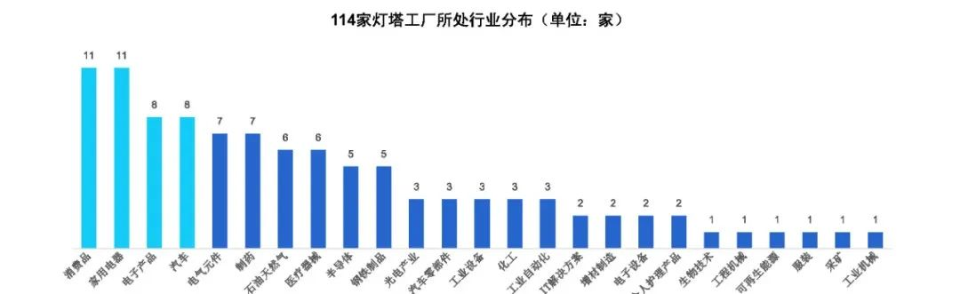 114家灯塔工厂分布在多个行业领域,其中消费领域(消费品、家用电器、电子产品、汽车等)行业的数字化进程走在市场前列。消费行业在互联网发展红利下销售终端率先实现数字化转型,随后向生产端推进。消费行业贴近消费者,关注提升消费者体验,激发企业在产品和服务融入数字化技术,把握快速变化的消费市场,提升消费体验。