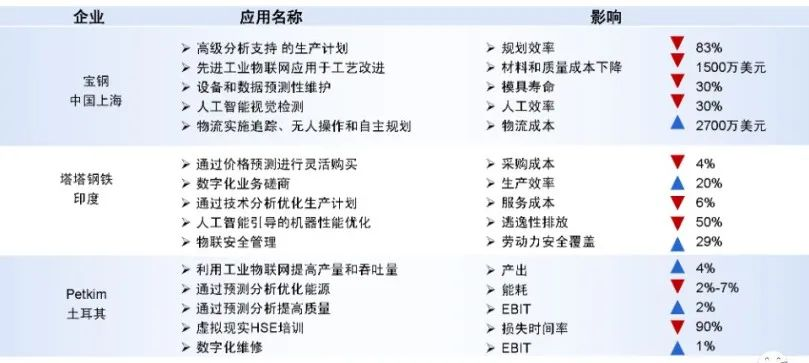 钢铁/石化行业属于典型的流程行业,数字化智能化转型的重点为成本的下降、能耗排放的降低、生产效率的提升。