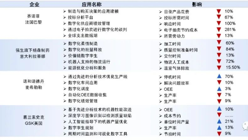 企业通过生产计划分析、价格预测、工业物联网改进工艺、数字化物流等方式降低各项成本,通过数字化生产计划、智能检测、数字化业务磋商、工业物联网提高生产效率。