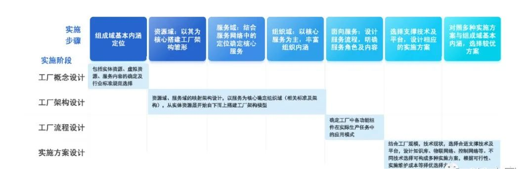 以流程工业中的石化工厂为例,《智慧工厂的参考模型与关键技术》将工厂实施架构方案分为四个阶段七个阶段。