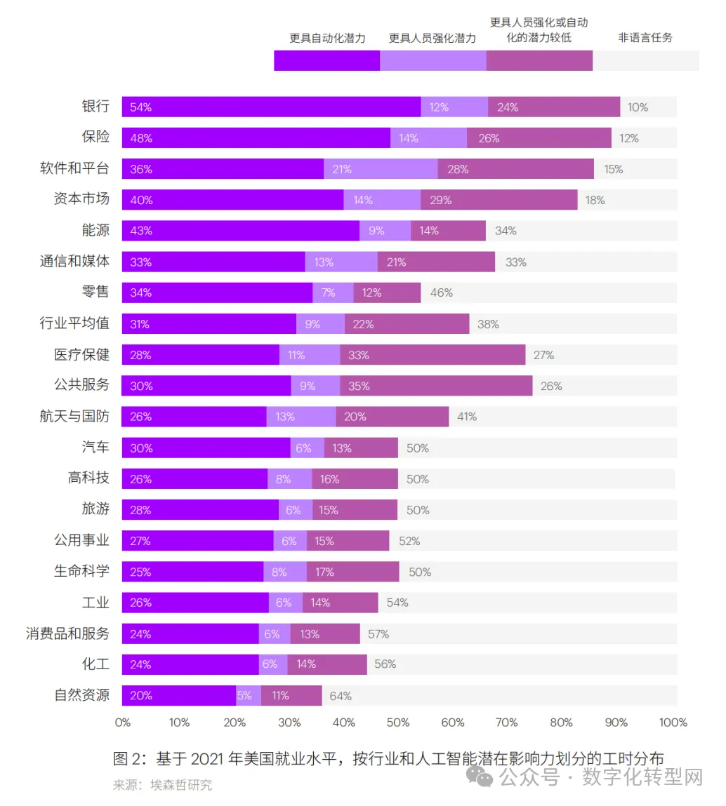 Five out of 22 job types will be significantly impacted by AI, accounting for more than half of all working hours. 数字化转型网(www.szhzxw.cn)