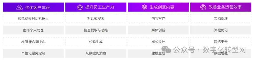 A large number of generative AI innovation scenarios across industries have sparked demand for technology products and services, such as: 数字化转型网(www.szhzxw.cn)