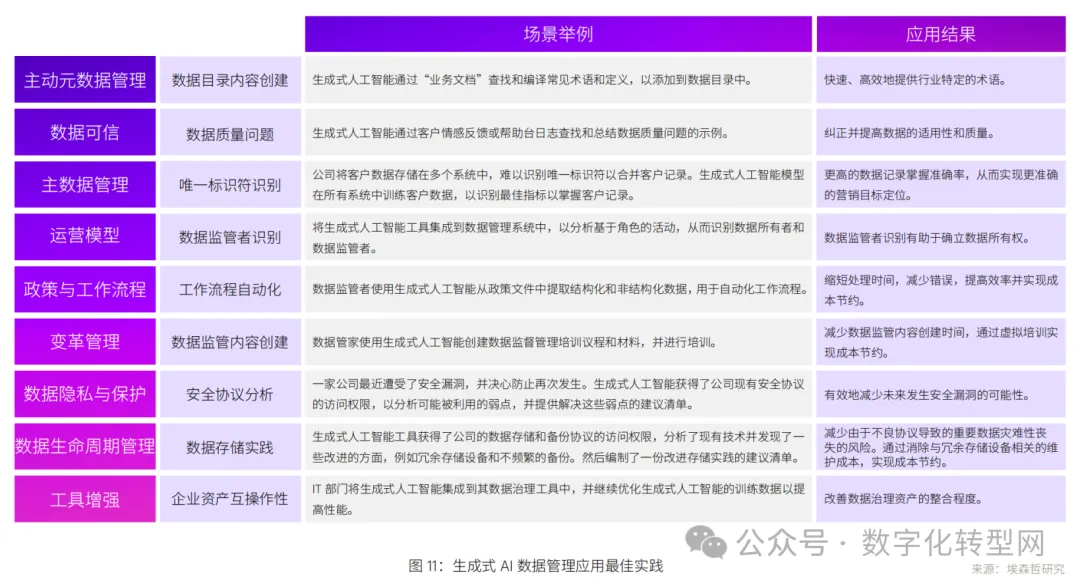 同时,准备专有数据以确保数据的安全性,为企业提供可靠的数据支持。通过生成式AI驱动数据管理,创造最佳实践,有助于企业以更高效的方式运用数据资源。