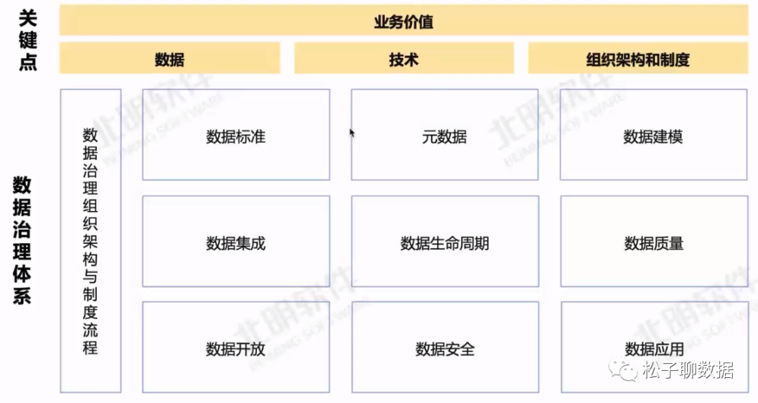 数据治理体系主要包含内容有数据标准、元数据、数据建模、数据集成、数据生命周期、数据质量、数据开放、数据安全及数据应用。