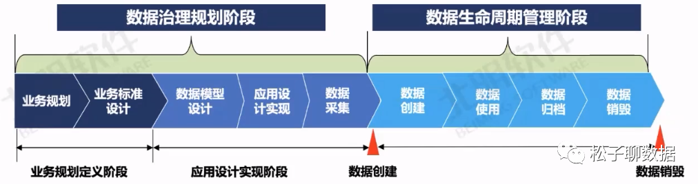 按照两个大的阶段来划分:数据治理规划阶段+数据生命周期管理阶段。