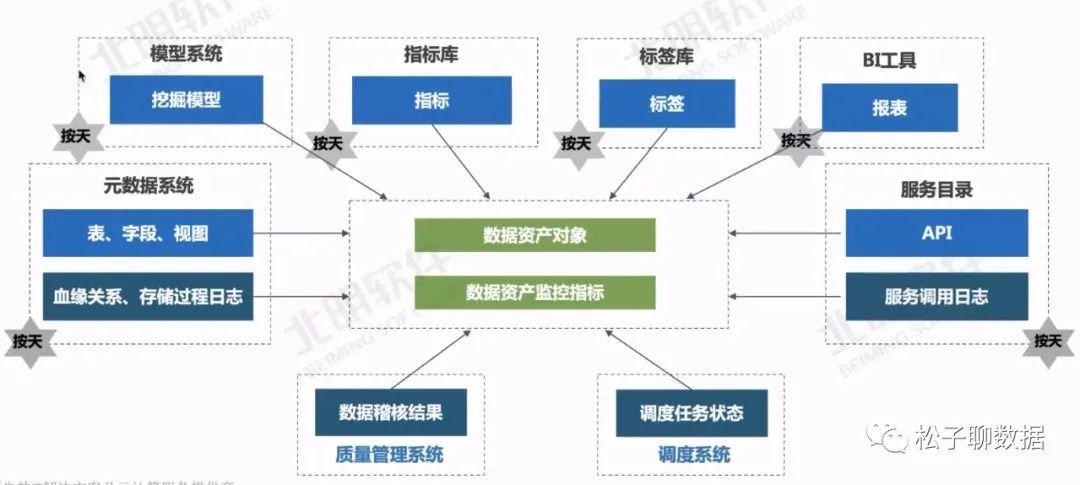 数据资产将与元数据、数据质量、ETL等模块通过接口互通,根据需求获取数据资产实体信息和数据资产监控指标,实现资产跨平台串联,增强资产在监控运维和价值评估中的数据协同。
