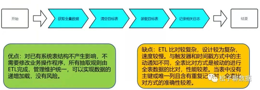全量同步又叫全表删除插入方式,是指每次抽取前先删除目标表数据,抽取时全新加载数据。该方式实际上将增量抽取等同于全量抽取。对于数据量不大,全量抽取的时间代价小于执行增量抽取的算法和条件代价时,可以采用该方式。 数字化转型网(www.szhzxw.cn)