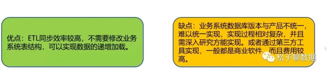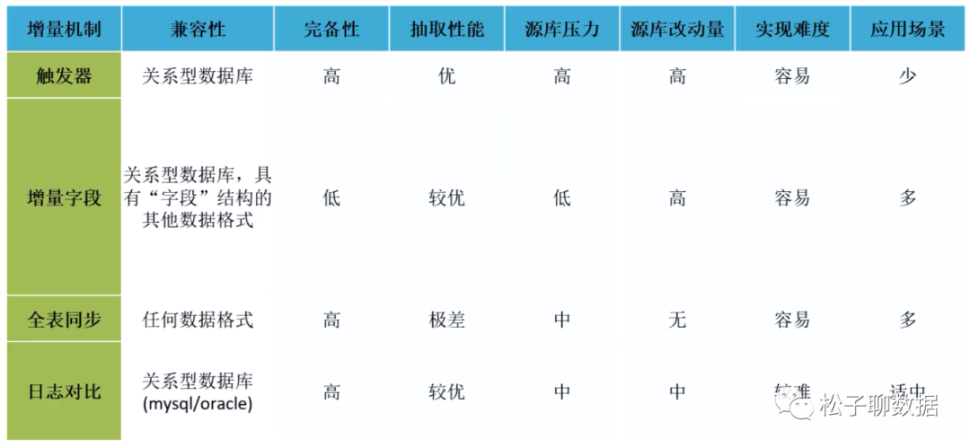 日志比对的方式是通过获取数据库层面的日志来捕获到变化的数据,不需要改变源业务系统数据库相关表结构,数据同步的效率比较高,同步的及时性也比较快,最大的问题就是前面所提到的不同的数据库的数据库日志文件结构存在较大的差异性,实施分析起来难度比较大,同时需要具备访问源业务库日志表文件的权限,存在一定的风险性,所以这种方式有很大的局限性。