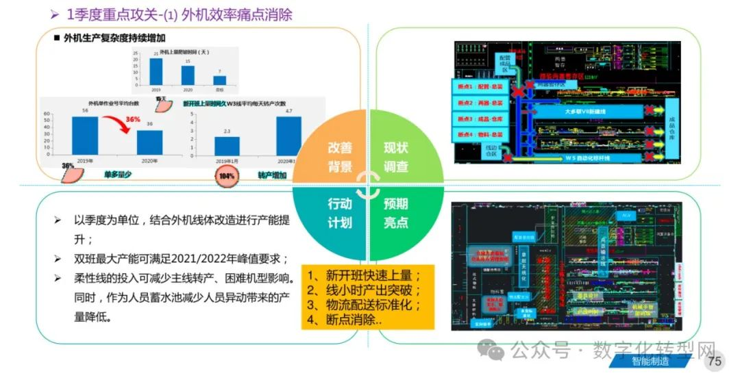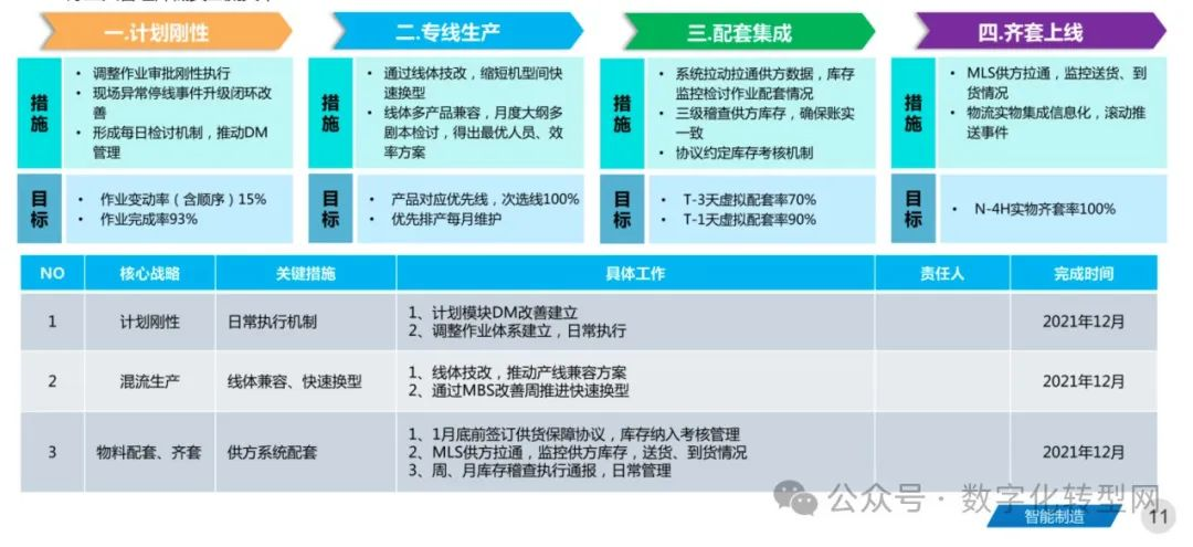 强化安定化生产十六字原则(计划刚性,专线生产,配套集成,齐套上线),提升精益基础改善工具的现场使用效果,提升过程质量水平,做好工人管理,降低员工流失率。数字化转型网www.szhzxw.cn