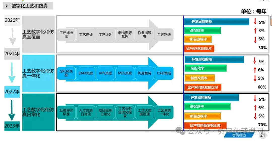 通过数字化工艺系统拉通,推进数字孪生技术应用;通过5M1E数字化,实现实物流与信息流实时同步。人、机器、产品之间交互;让系统具备自判断、自适应、自调整、自学习能力。数字化转型网www.szhzxw.cn