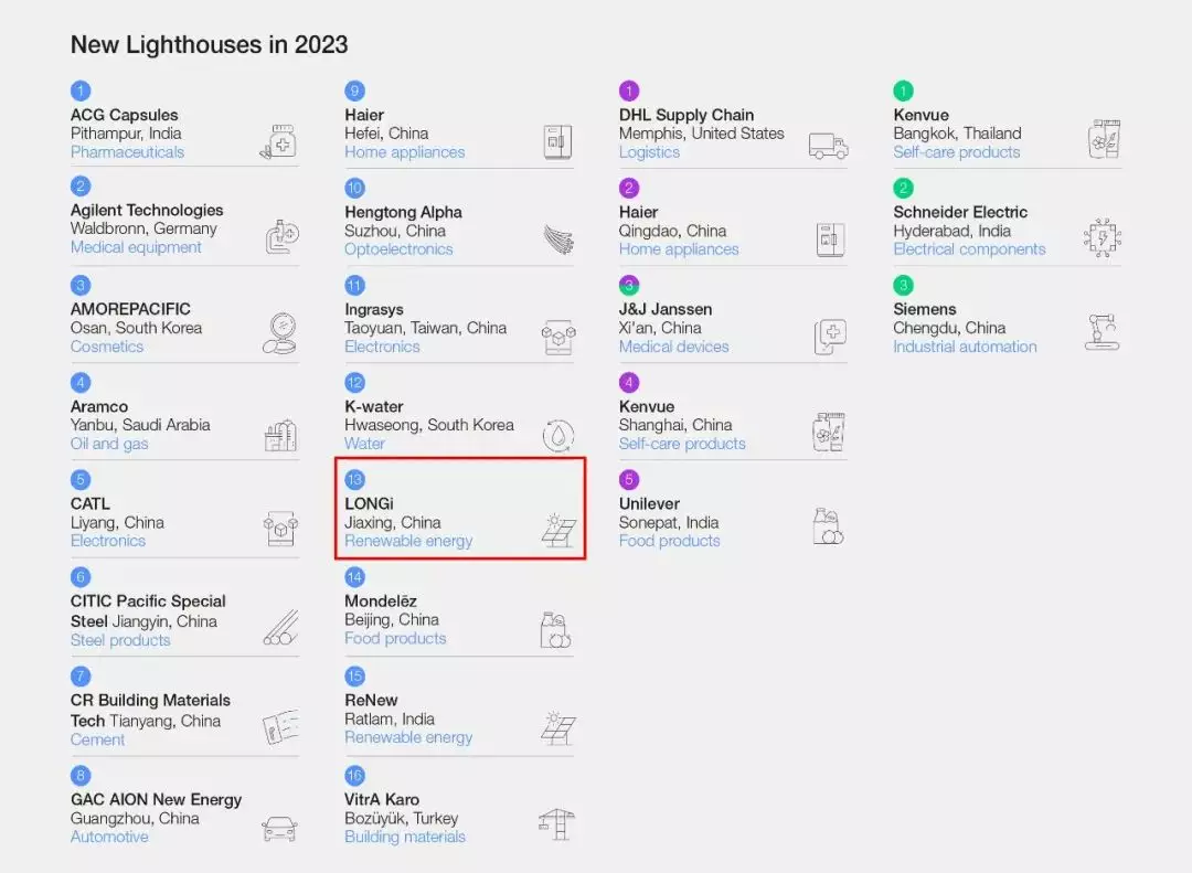 世界经济论坛(WEF)近日公布最新一批“灯塔工厂”名单。在全球新晋的21座工厂中,隆基绿能嘉兴基地是全球光伏行业唯一入围的工厂。这意味着,全球光伏行业首个、浙江省第二个“灯塔工厂”在秀洲诞生。