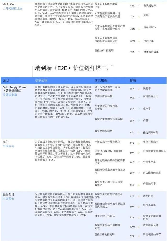 附录:灯塔工厂用例、变革故事和影响