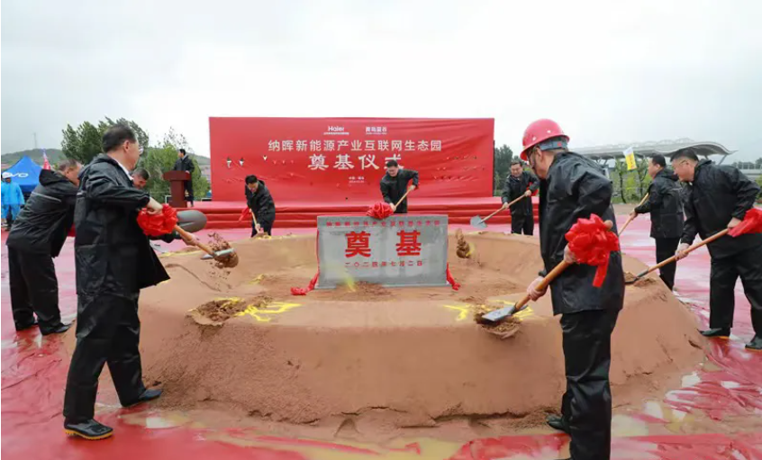 7月2日,蓝谷·纳晖新能源产业互联网生态园奠基仪式在青岛蓝谷纳晖新能源项目工地举行。