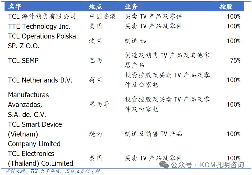 建设海外子公司是TCL在制造全球化中重要手段。TCL在海外重要市场因地制宜、以设立全资或合资子公司的方式实现精细化,从而更好更好抢占市场。据TCL电子年报披露,目前与家电相关子公司共设有8家: