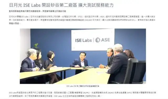 近日,日月光投控继续扩产,旗下日月光半导体ISE Labs宣布于加州圣荷西开设第二个美国厂区。据悉,日月光半导体ISE Labs美国圣荷西新厂区主要负责可靠性和验证程序,服务客户包括人工智能(AI)/机器学习(ML)、先进驾驶辅助系统(ADAS)和高性能计算(HPC)等新兴半导体应用领域的解决方案开发厂商。而弗里蒙特厂则是专注于测试功能,两个厂区的运营总面积超过15万平方英尺(约1.39万平方米)。