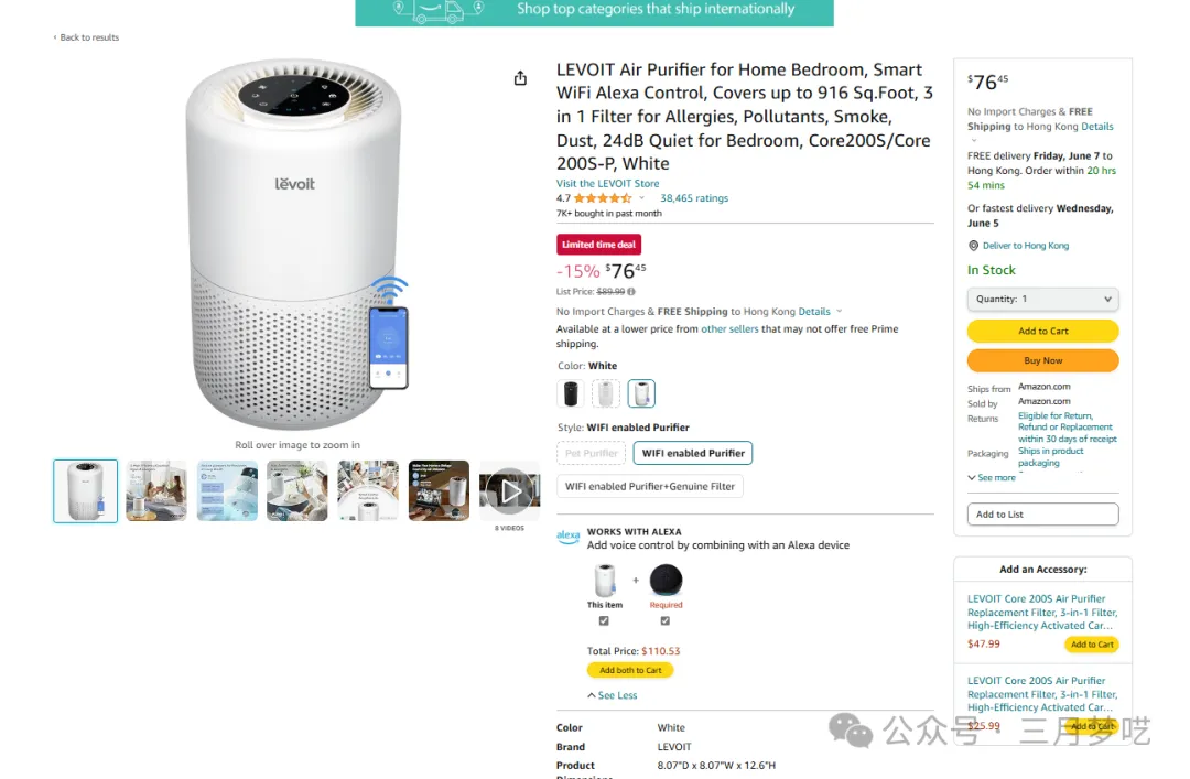 晨北科技便是出海小家电赛道的头部玩家。该公司成立于2013年,主营体重秤、厨房秤、空气加湿器、吸尘器、空气炸锅、烤箱、电热水壶等智能小家电产品。经过多年发展,该公司建立起了Etekcity、Levoit和Cosori三大品牌,成功入驻了包括亚马逊、沃尔玛、乐天、Wayfair在内的各大主流电商平台,产品销往全球100多个国家和地区,已然成为了极具影响力的垂类头部大卖。