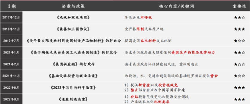 海外建厂相关强制性或优惠性法案和行政令示例 (来源:美国、加拿大政府官网)