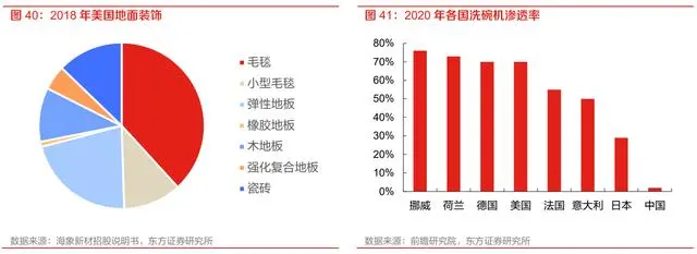 增幅有望超 50% 智能清洁家电具备刚需属性:长期来看在海外市场,由于家装地毯的盛行,地面装饰材料以毛毯为主,根据海象新材招股说明书 2018 年美国地面装饰毛毯占比超 50%。