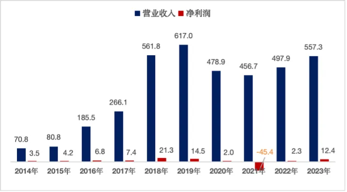 2014年-2023年期间公司盈利情况(单位:亿元)