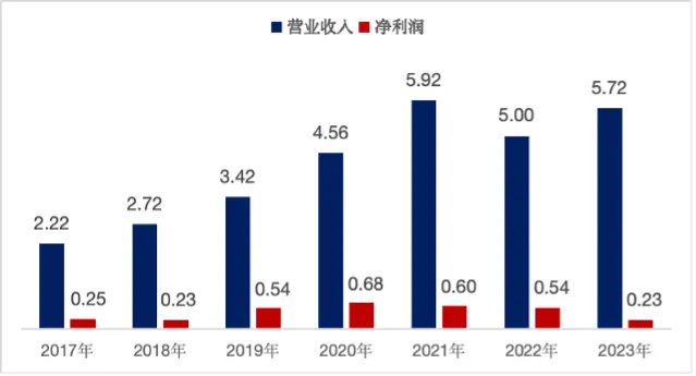 2017年-2023年期间公司盈利情况(单位:亿元)