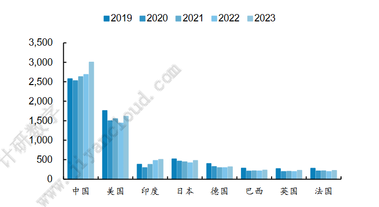 根据计研的数据,全球汽车市场在经历疫情后的波动后,正在逐步恢复并有序增长。2023年全球汽车销量达到约8,842万辆,同比增长11.32%。其中,中国和美国在全球汽车市场中占据主导地位,印度和日本也保持较大的市场份额。特别是中国,2023年汽车销量占比达到34%,销量突破3,000万辆,稳居全球首位。