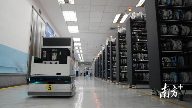 AGV小车在生产车间里自动运动生产物料。 南方+ 何伟楠 拍摄