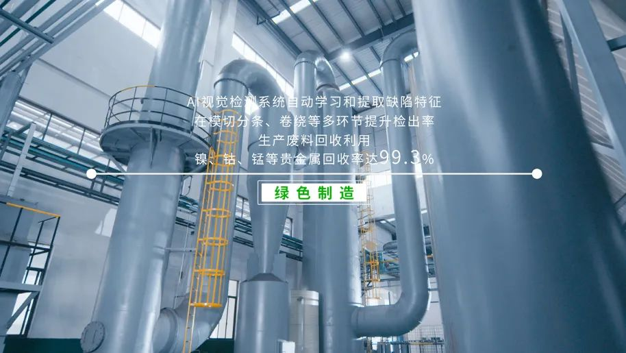 制造过程中产生的废料将全部投入回收利用,镍、钻、锰等金属回收率可达99.3%。