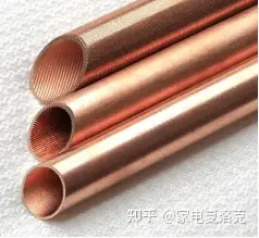 其次,美的冷凝器的铜管和普通铜管不同,也不是简单的内螺旋铜管,而是采用了高密齿铜管,这种铜管的换热面积更大,由此来提升整个冷凝器换热能力。