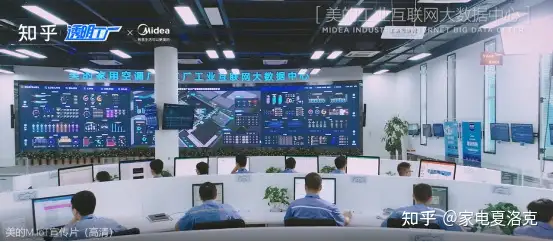 不过可惜的是,由于保密机制,这个环节不允许拍照,不过我从美的的宣传片里截取了一张图,可以看到图中的监控大屏,上面显示了工厂各个环节的明细。