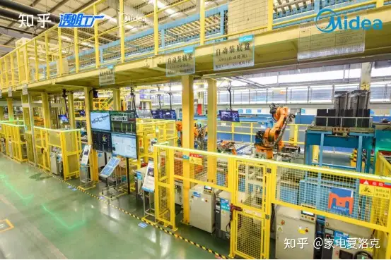 机械臂用的是美的旗下库卡家的,库卡也是全球四大机械臂厂商之一了,以至于很多友商在自动化生产线链条上都会用到。