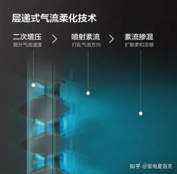 舒适风是美的的另一个研究方向,主要是为了避免冷风直吹,也叫第三代导风技术。