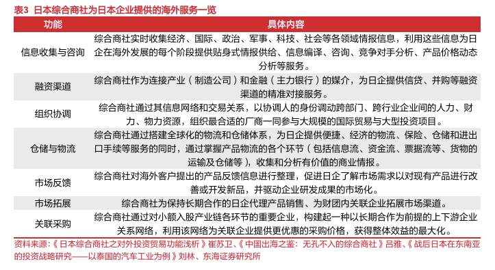 不同于中国车企单兵作战,日系车企采用团队协同出海模式。与中国车企“单打独斗”的模式不同,日本车企在泰国的发展离不开日本政府的大力支持,并凝聚了通产省、国际开发银行、大型财团的综合商社等多个国家开发平台的力量。其中,日本政府依托ODA援助计划改善了泰国的营商环境,并通过入资矿产、石油等行业,降低了车企获取关键原材料的门槛;此外,日本综合商社也为日本车企提供了信息搜集、市场拓展、融资渠道、关联采购等服务,为日本车企了解当地政策和市场情况、建立销售渠道网络、维护和协调本地政商关系提供了支持。而后,日本车企采用“丰田等大企业开路,附属零部件企业跟进,再集体投资”的模式形成牢固的产业联盟体系,比如丰田推动“丰田系”厂商在泰国建厂,并开放了供应链以供其他日系车企使用,逐渐形成了围绕几大日系整车厂的零部件产业集群。随着日系汽车产业联盟在泰的影响力逐步扩大,其对泰国汽车产业规则的制定的政策走向拥有了话语权,这为日系车企在泰的发展奠定了坚实的基础。