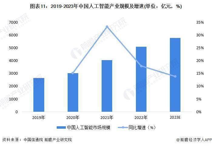 受益于国家政策的支持,以及资本和人才的驱动,我国人工智能产业蓬勃发展,已步入世界前列。根据中国信通院发布的数据,我国人工智能产业规模从 2019 年开始快速增长,2021 年同比增长达到 33.3%,2022 年产业规模达到 5080 亿元,同比增长 18%。初步统计,2023 年规模达到 5784 亿元,增速放缓至 13.9%。 数字化转型网www.szhzxw.cn