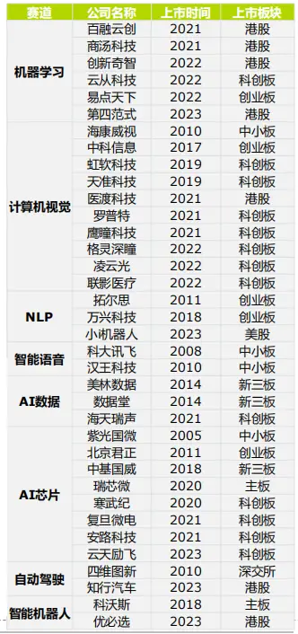 2023年新上市AI公司共5家,分别为第四范式、小i机器人、云天励飞、知行汽车与优必选,涵盖了AI领域大部分赛道,上市后股价均不容乐观,而其中无论是作为为传统机器学习头部厂商如第四范式,还是典型以NLP、智能语音技术提供智能坐席等服务的厂商小i机器人,都有明确拥抱AIGC的动作和规划,但从实际结果而言,资本市场并未买单。 数字化转型网www.szhzxw.cn