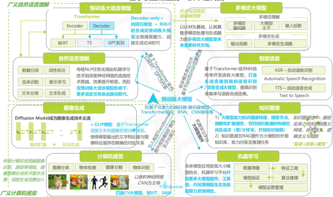 从技术发展来看,大模型基座催化AI工业化生产,加持各AI细分技术赛道的革新发展。而大模型以泛化推理能力见长,小模型以高成熟度、性价比优势仍存市场,大小模型是当下产业应用的核心落点。未来,多模态模型与MOE架构将共同拓展大模型产业空间;