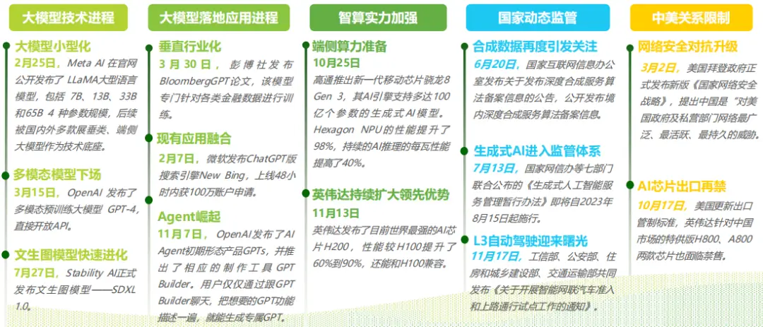 2023年,生成式AI为人工智能领域带来重大突破与新的希望,而围绕生成式AI的政策布局也迅速铺开,从数据资源和算力基础夯实,到快速对生成式AI规范化引导,再到产业扶持,形成一套强有力的组合拳;