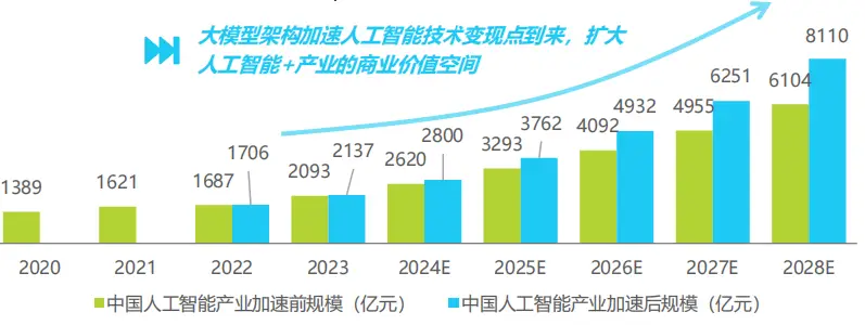 2028年中国人工智能产业规模将超8000亿元,五年复合增长率达到30.6%