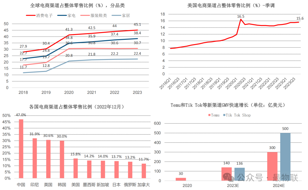 家居提升空间仍大;美国电商渗透率仍持续提升;Temu等新渠道快速增长
