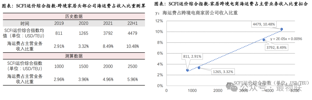 在1000/1500/2000/2500(USD/TEU)时,对应海运费占收入比3%/4%/5%/6%