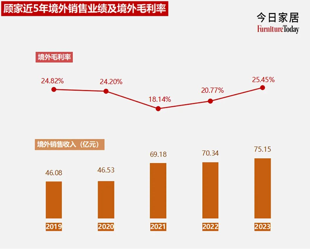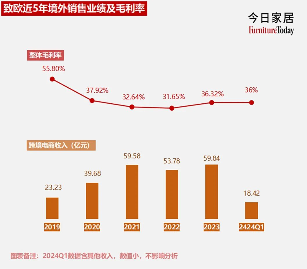 2021~2023年致欧家居的境外收入维持在50~60亿区间,2019~2023年销售年复合增长率26.69%。2023年整体毛利率达到36.32%。这个毛利率在同业对比是很高的。