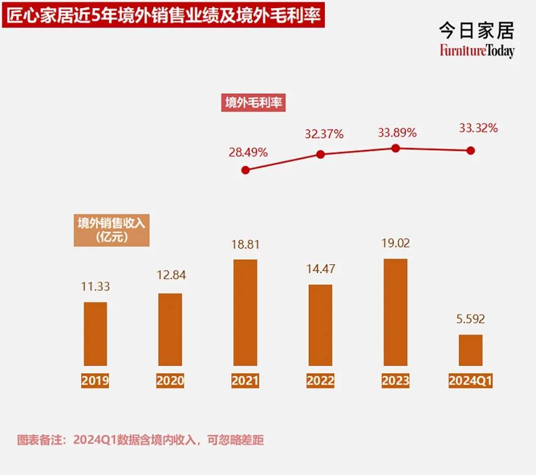 2019~2023年匠心境外收入年复合增长率为13.83%,2024Q1营收同比增长30.66%,归母净利润同比增长57.97%,扣非净利润同比增长82.93%。
